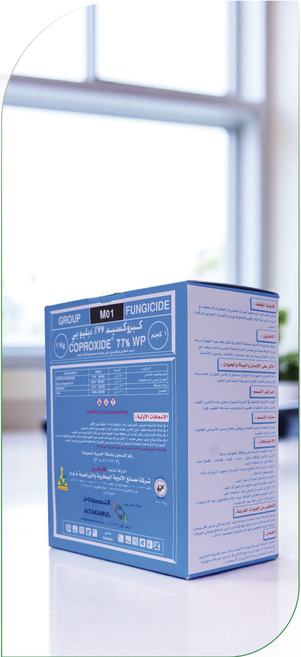 مبيد فطري بكتيري متخصص يتركب من هيدروكسيد النحاس الأكثر أماناً في الاستخدام الآدمي، يستخدم في المحاصيل الحقلية والخضروات وأشجار الفواكه ونباتات الزينة كمبيد وقائي من العديد من الأمراض الفطرية والبكتيرية ويفضل تكرار الرش كل 7-10 أيام. وهو مبيد فطري وبكتيري على هيئة مسحوق قابل للبلل.