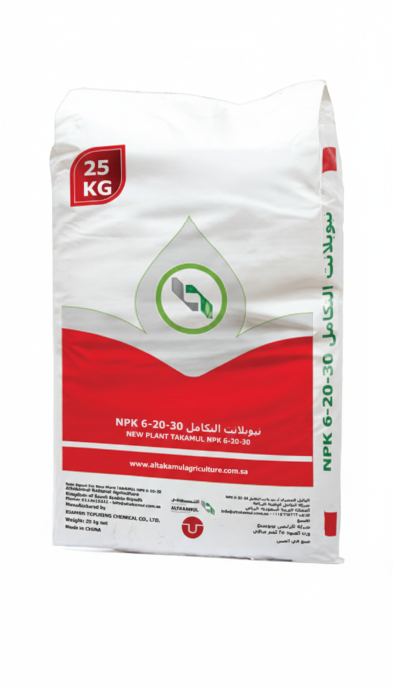 سماد ذواب متوازن غني بالفوسفور والبوتاسيوم، يحتوي على 6% نيتروجين، 20% فوسفور، و30% بوتاسيوم. يُستخدم لدعم الإزهار وتكوين الثمار وتحسين جودة الإنتاج، ويُضاف مع مياه الري بالتنقيط أو الري المحوري للمحاصيل الحقلية والخضروات والفواكه