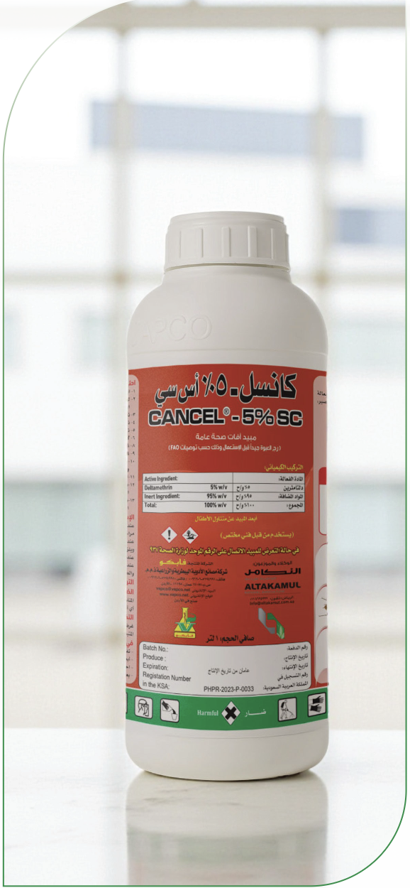 مبيد حشري بايروثرويدي للقضاء على الحشرات الضارة بالصحة العامة، على هيئة مركز قابل للاستحلاب.